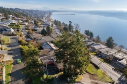 Unprecedented views on Hillside White Rock, Corner 8,954 SF rectangular lot, 135 foot depth@ Kerfoot / 70 feet of frontage on Marine Drive South & Sunset Drive North. View is spanning East to West over the ocean ,shoreline, Pier Mt Baker with sunrises east & sunsets west . Sunset Drive offers a quiet road w/ no traffic, your parking access to home is off Sunset Drive or Kerfoot Road. Walk out Basement Rancher is 2763 SF basement@ 904 SF. Home offers 3 bedrooms & 2 bath . One bedroom suite below. Schools: Semiahmoo Sec & Bayridge Elem. Walk to pier, enjoy the shores of White Rock Beach every day. Clean air & healthy lifestyle. New roof went on 2021. Double Garage 477 SF & Long Driveway for parking RV-Boats , Ocean View Balcony 519 SF & Patio for Suite 259 SF. Brochure Available