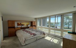 Unobstructed ocean view in the heart of White Rock, Canada's Malibu, boasting 180 degree views from White Rock Pier to Ocean Park. The Gulf Islands, San Juan's & Blaine are also on display across breathtaking Semiahmoo Bay. Whales & marine life abound. 2 bedroom, 3 bathroom, spacious beach house includes skylights in a vaulted ceiling staircase & above the primary bedroom ensuite. Open concept with a large glassed in solarium & balcony, facing the ocean. The solarium can also be the perfect, scenic office space. Gas fireplace, ensuite laundry & window coverings for every occasion accent the award winning design. Fully rain screened with hardie board siding. Join White Rock's beach community in a rare opportunity to own this waterfront townhomes. ***OPEN HOUSE Sat Jan 31 2pm to 4pm***