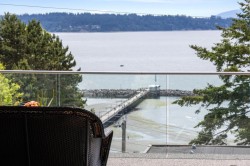 Incredible pier & ocean views, 4,535 SF of living space on 4 levels maximizing views & privacy. Elevator, nano walls, A/C, radiant heated floors w/ concrete between floors, exec contemp kitchen w/island, euro appl pkg & wok kitchen. Control4. Lux spa inspired bathrms & 5 large bedrooms. Primary bedroom w/ocean view. Gym, media lounge & legal 2 bdrm suite. View open & covered balconies, patios & sundecks exceed 2,500 SF w/ a rooftop deck overlooking the pier. Entertain in grand style on top of the world. Easy walking distance to dining at the pier or stroll White Rock Beach Promenade. Schools: White Rock Elementary & Semiahmoo Secondary. 4 car garage 708 SF & driveway for 4 cars. East side of property, city green Space-no neighbor. Brochure avail. ONE OF THE BEST VIEWS IN THE CITY!