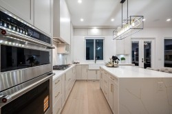 Beautiful 4,700sqft Modern Family Home in White Rock! The perfect open-concept layout on the main floor for seamless indoor/outdoor entertaining. Great room complete with custom millwork, luxurious kitchen with stone counters & a bonus wok kitchen, plus a spacious dining room. Office/guest bedroom conveniently tucked away on the main! Upstairs features 4 bedrooms including the airy primary suite, complete with a spa-inspired ensuite. The lower level is finished with a 2-Bedroom Suite, PLUS the option for a second 1-Bedroom Suite, for optimal rental income or for multi-generational living. Additional media room downstairs for your family's personal use. Steps to 5 Corners, White Rock Elementary and Earl Marriott Secondary School, local shops and highways. A MUST SEE!