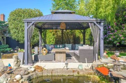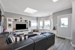 This gorgeous, well-maintained, 4 bed plus den, 3 full bath home, with ocean views from the 2nd floor and roof-top deck, is the perfect coastal retreat! Beautifully landscaped private back yard,with a lush garden,gazebo and Koi pond is your own little oasis to relax and enjoy, yet large enough to entertain friends and family. Lovely, manicured, south-facing front yard, and the big beautiful windows and skylights throughout the home let in tons of natural light. A gorgeously renovated 2nd floor has access to the wrap-around deck from the fam. room and primary bdrm.The perfect spot for your morning coffee and evening sunsets! Or, climb the indoor ladder to the rooftop deck for SPECTACULAR panoramic views! Close to schools, shopping, dining and White Rock beach!