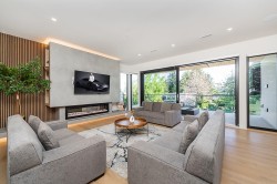 Perched on a south facing lot, this California inspired home offers a perfect blend of coastal living with striking architecture and OCEAN VIEWS! Featuring high ceiling glass walls that flood the space with natural light, a rooftop terrace, expansive patios and spa like primary suites with soaker tubs. The chef’s dream kitchen features PREMIUM appliances, a stunning 12 ft waterfall island, and a double entry wok kitchen that seamlessly connects to a spacious living area and formal dining space equipped with a wine cellar and coffee nook. Featuring bedrooms on the main floor, the lower level transforms into the ultimate entertainment zone- distinguished bar, rec room, theatre room, flex living space and a legal suite. Open house Sun Feb 15 2-4pm.