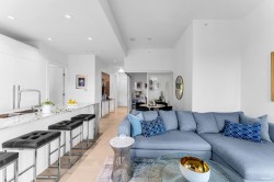 Enjoy stunning ocean views and abundant natural light throughout this exquisite home, complete with two spacious patios perfect for relaxing. The modern kitchen features full-size Miele appliances and a luxurious marble waterfall countertop. With soaring ceilings, side-by-side parking, and a finish that outshines the show home, this residence offers both style and comfort. Residents of Foster Martin enjoy over 10,000 sq. ft. of world-class amenities, including an indoor/outdoor pool and full concierge service.
