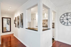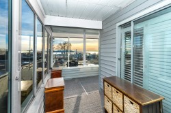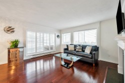 Enjoy breathtaking 180° ocean views from this beautifully renovated 2 bed, 2 bath home in the heart of White Rock. Thoughtfully updated throughout, it features rich wood flooring, granite countertops, custom built-ins, generous storage, and a sleek electric fireplace that adds both warmth and modern style. California shutters open to a spacious 138 sq. ft. wraparound enclosed balcony, seamlessly extending your living space and offering the perfect place to relax and soak in year-round coastal views. Just steps from the vibrant heart of uptown White Rock, where shops, cafés, and local charm create the perfect coastal lifestyle. This is more than a home; this is ocean-view living at its finest!