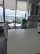 Stunning 2-bedroom + den corner unit on the 24th floor in central White Rock, BC, offering breathtaking panoramic views of the ocean, mountains, and city with approximately 1,000 sq ft of bright, modern interior living space plus a spacious 300 sq ft wrap-around L-shaped balcony—perfect for relaxing or entertaining. Designed for comfort and style, this home features contemporary high-end finishes, air-conditioning, floor-to-ceiling windows, a smart, functional layout, 2 full bathrooms, and resort-style amenities within the luxury resident facility, including a fully equipped fitness centre, yoga studio, hot tub, sauna and steam room, entertainment lounge with kitchen, outdoor terrace with seating areas, workspace/study rooms, guest suites, and a secure building with concierge.