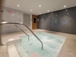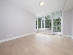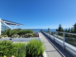 LUXURIOUS BEVERLEY RESIDENCE. Premier Cressey craftsmanship! Stunning 2-bedroom & den delivers sophisticated urban living with seamless open-concept design. Designer kitchen features marble accents & professional-grade appliances, perfectly integrated with expansive entertaining spaces framed by dramatic wall-to-wall windows for abundant natural light. Master retreat accommodates king furniture with spa-inspired ensuite. Versatile den. Private 244sqft heated outdoor oasis with OCEAN VIEWS & gas BBQ ready! Premium lifestyle: resort-style pool, therapeutic hot tub, rejuvenating steam/sauna facilities, dedicated concierge, hospitality suite, plus spectacular ocean view rooftop deck for private and building use. Wonderful community! 2 EV parking! 2 Storage! Call realtor for full package.
