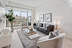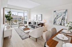 Bring your furniture! Extra large two bedroom offers plenty of room in the primary for a full bedroom suite AND features extra closet storage. The primary ensuite includes a walk-in shower and soaker tub with heated tile floors. Huge kitchen with island seating and a nearby laundry room for easy access. Enjoy sunset ocean views from your private patio. Two parking stalls, one private EV charger, storage and access to a 3000 SF multi-purpose space designed to provide lifestyle conveniences you will use every day. Walking distance to the East Beach promenade, White Rock Town Center, schools, parks and many eateries and amenities. Easy living w/Concierge on-site, safe parcel storage, and a guest suite for friends and family. Final homes remaining! Photos of 6th floor unit, same floor plan.