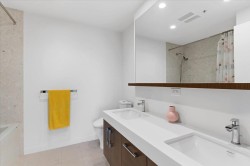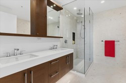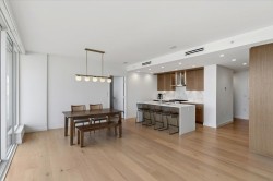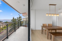 Now this is Uptown White Rock! Welcome to White Rock's Semiah by Marcon, located in the heart of the city by the sea! This spectacular 2 bed plus den, 3 bathroom, 1305 sqft, southeast unit features a ton of natural light from its exposure facing Mount Baker and Semiahmoo Bay; a spa like primary ensuite, an oversized outdoor deck, and powered blinds. These designer homes come with floor to ceiling windows, engineered flooring, a Wolf Induction cooktop, quartz countertops, spa-like bathrooms with marble tile, forced-air heating, and air con! Both bedrooms come with an ensuite bath! This unit includes 2 side by side parking stalls and a large large storage locker. Not to mention your are minutes away from the farmers market, uptown White Rock, White Rock Elementary, and White Rock Beach!