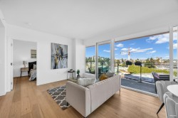 Welcome to SEMIAH by Marcon. This gorgeous and spacious 1,208 sqft 2 bed, 2 bath home and a flex area in the heart of White Rock is one of the best view buildings in the area. Sweeping mountain views reaching to Semiahmoo bay, this quality built home is finished with top of the line appliances including a wolf gas range and Bosch refrigerator & dishwasher. The cabinetry throughout is solid wood. Other bonus features air conditioning, plenty of sweeping windows, closets with built in shelving & spa-inspired ensuites. Don't miss out!