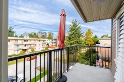 Welcome to Regency Court Penthouse living—this top floor corner suite offers 2 bedrooms, 2 bathrooms and 1,003 sq. ft. of bright, sun-filled living space. Freshly painted and move-in ready, this home features built-in air conditioning in both bedrooms for year-round comfort, plus large windows that capture natural light throughout. Enjoy ocean views from your private balcony. Two secure parking stalls and a storage locker add everyday convenience. Ideally located in a central, walkable White Rock neighbourhood close to shops, cafés, restaurants, transit and the beach. A rare penthouse opportunity in a sought-after building.