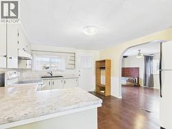 Well-maintained 3-bedroom, 1-bathroom home situated on a large 0.45-acre corner lot. Vacant and offering quick possession, this property may be well suited as a starter home, downsizing or retirement option, or rental property. An excellent opportunity for buyers looking to transition from renting to home ownership. Numerous updates include a new roof (Aug 2025), new kitchen countertops (Aug 2025), new furnace (Sept 2025), hot water tank (2016), and updated electrical, plumbing, and attic insulation (2022–2023). The existing wood stove has been removed and capped; a brand-new electric fireplace heater is included (in box). Fenced front yard. City bus stop located nearby. (id:27)