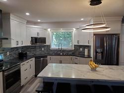 R31//Swan River/Love where you live! Contemporary design kitchen with custom white cabinetry, & a gorgeous large island featuring hanging pendent lighting. Ample storage & counter space here. Showcasing a spacious, open concept- kitchen living room combination, the complete main floor was renovated, including electrical & plumbing. Main floor features 3 nice sized bedrooms with a main 4 pc bath. The primary bedroom comes with a walk-in closet, & large ensuite. Dining room exits onto your spacious deck with lots of room for your BBQ & patio set, & a very spacious back yard, as this address consists of 2 lots. The lower level doubles your living space with a family room, 2 more bdrms, den, laundry, and 5 piece full bath. ( Vacant lot net taxes $450.05./ Net prop taxes on home $4443.39) Call/text for your private appointment. l (SRR) (id:7525)