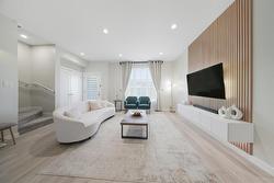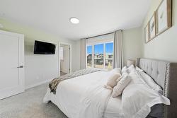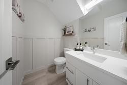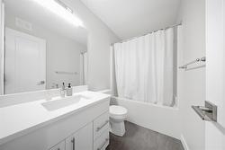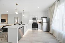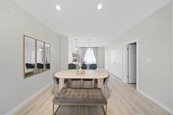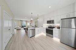 4E//Winnipeg/Welcome to this beautifully upgraded two-storey townhouse in the desirable community of Aurora at North Point. The open-concept main floor features 9-foot ceilings, designer wall paneling, pot lighting, and upgraded kitchen pendants for a modern, inviting feel. Quartz countertops throughout the entire home elevate both the kitchen and bathrooms. Upstairs offers three spacious bedrooms, two full baths, a primary suite with walk-in closet and ensuite, plus convenient second-floor laundry. Extras include central air conditioning, a smart thermostat, full appliance package, fully fenced backyard, finished front landscaping, and a double detached garage with oversized door, electrical sub-panel, and Stage 2 EV charging capability. Back door provides direct access to the basement. A refined home in a vibrant community. Book your private showing today, Offers anytime! (id:7525)