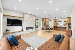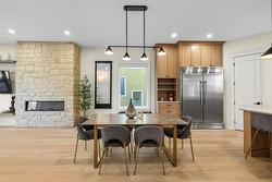1C//Winnipeg/Beautifully crafted 4-bedroom + den, 3.5-bath luxury home offering 2,183 sq ft of sophisticated living between Grosvenor & Kingsway. New construction with timeless appeal, the striking exterior boasts a stone fa ade, timber accents & snap lock metal roof. 10' ceilings on the main level elevate the space, anchored by engineered hardwood floors & a custom stone fireplace with floating shelves. The kitchen features custom white oak cabinetry & quartzite counters with premium appliances. A bonus den on the main floor makes the perfect home office. The finished basement offers 9' ceilings, a spacious rec room with wet bar for entertaining, 4th bedroom, full bathroom & room for a gym or potential 5th bedroom. Upstairs, the primary suite impresses with dual walk-in closets, large windows & ensuite complete with tiled steam shower, soaker tub, double vanity, water closet, & heated flooring. The second & third bedroom are spacious, with walk-in closets & the second bathroom with dual vanities gives your kids room to grow. The yard features a large deck plus future patio & sodded area (spring 2026) and an oversized double garage. Blanket 1 & 5 year warranty. (id:7525)