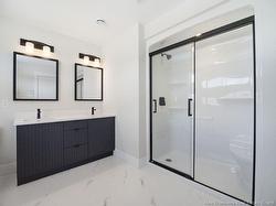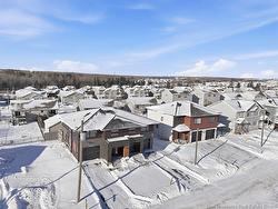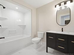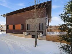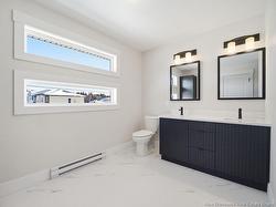 Welcome to this beautifully designed modern home offering the perfect balance of style and functionality. The property makes a strong first impression with eye-catching curb appeal, a contemporary exterior design, stone and siding details, and a wide double driveway.A bright, flowing main floor creates the perfect setting for gatherings, featuring a contemporary kitchen with smooth-finish cabinetry, quartz countertops, an oversized island, and eye-catching lighting.The dining area flows into the sun-filled living room, highlighted by a modern electric fireplace with a tiled feature wall and large windows overlooking the backyard.Upstairs you’ll find three well-proportioned bedrooms, all with ceiling fans, highlighted by a private primary walk-in closet and an elegant ensuite. A full laundry room on the second floor adds comfort and functionalit.The FULLY FINISHED BASEMENT provides additional living space with a COZY FAMILY ROOM, an EXTRA BEDROOM, and a MODERN 3-PIECE BATHROOM, ideal for guests or a home office.Enjoy outdoor living on the EXTRA-LARGE PRIVATE DECK. Additional highlights include an attached garage, modern light fixtures throughout, two energy-efficient mini-split heat pumps, and finished bathrooms with mirrors installed. Situated in a quiet, family-oriented neighbourhood, this move-in-ready home is designed for today’s lifestyle.New Home rebate and NB Power grant to builder on closing.8 Year HOME WARRANTY TO BUYER ON CLOSING!