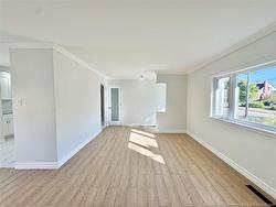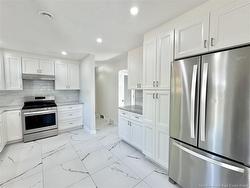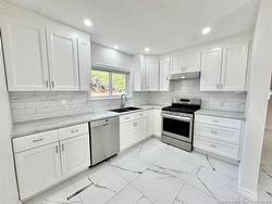 Welcome to 68 Coronation Drive, a fully updated bungalow located in the highly sought-after New West End. Offering four bedrooms including two non conforming bedrooms and two full bathrooms, this home has undergone extensive renovations and is completely move in ready. The main level features a bright, functional layout, with a spacious living room centred around a natural gas fireplace and an adjoining dining area. The custom kitchen is brand-new and thoughtfully designed, featuring soft-close cabinetry, generous storage, and modern finishes. The main-floor bathroom has been fully rebuilt from the studs, with updated fixtures and finishes, and new tile flooring ties the kitchen and bath together seamlessly. New flooring extends throughout the bedrooms and living areas, complemented by updated lighting. The lower level is fully finished, including a large family room, a non-conforming bedroom, and a full three-piece bathroom. New wood stairs connect both levels, and the entire home has been freshly painted. Outside, the backyard offers a newly updated deck overlooking a fully fenced yard. The front yard is accented by three apple trees. Additional features include a new exterior 2024 heat pump unit, a storage shed, and a large concrete driveway. Completed designs for a future garage are also available. Situated in a strong family-oriented neighbourhood, the home is conveniently located near Birchmount, Hillcrest, and Saint Bernadette schools, Jones Lake and Centennial Park.