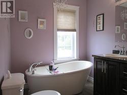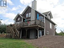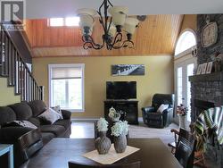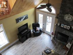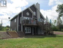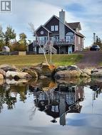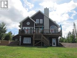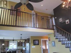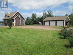 Beautiful and breathtaking Riverfront property situated along the banks of the mighty Exploits River! This 1.5 storey home has to be seen to truly be appreciated. Main level of home features living room with electric insert fire place and vaulted ceilings, dining area with doors leading out onto a deck with an amazing water view, kitchen with island and hardwood cabinets, primary bedroom with walk in closet, main four piece bath with stand alone tub and stand up shower and a porch. Upper level consists of 2 bedrooms and main three piece bath. Lower level of home is partially developed and consists of a laundry room, utility room, mudroom with walk out basement, furnace room and large rec room with water views. Exterior of home is meticulously landscaped with many mature trees and shrubs, firepit area, garden and easy access to the river for launching a boat or kayaks. Exterior also has large detached garage measuring 24x40 and an additional storage shed and wood shed. Home is heated by electric baseboard heat and wood burning furnace. (id:27)