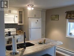 This traditional two-story home combines classic design with modern features, providing a comfortable living space for an individual or family. As you enter, you'll notice the modern custom cabinetry that not only adds a stylish touch but also offers ample storage for your needs. The kitchen features a dine-in peninsula with a sink, enhancing the functionality and aesthetics of the space. The main-floor laundry also has a half-bath which is an added bonus. The large dining and living room area is adorned with laminate floors and California-style ceilings, creating an inviting atmosphere for relaxation or entertaining guests. One of the highlights of this home is the breathtaking panoramic views of the Gulf of St. Lawrence and downtown Port aux Basques, which can be enjoyed from inside the home or on the patio. The west-facing patio doors lead to a wrap-around patio, extending the living space outdoors and providing a fantastic area for outdoor activities and enjoying the view. Additionally, there is a 12x16 storage shed on the property, offering additional storage space to meet your needs. This home is priced to sell and is a must see... (id:27)