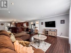 Welcome to a home where space, style, and pride of ownership come together in one of the area’s most desirable family communities. This move-in-ready home offers exceptional space, premium features, and a garage setup that truly sets it apart. Step inside to a bright, open-concept living, dining, and kitchen area, ideal for both family life and entertaining. The living room is warm and cozy with a wood stove, while a heat pump ensures efficient comfort year-round. The huge kitchen is a standout, featuring ample cabinetry, a cupboard pantry, and a mini fridge—perfect for hosting and busy households. This home offers 3 generously sized bedrooms, including a primary suite with a large walk-in closet and private ensuite. Every closet throughout the home features customized shelving, providing smart organization and maximizing storage. Elegant crown molding throughout the entire home adds a refined touch to every room. Outside, enjoy a fully fenced backyard with front and back gates, plenty of space for kids, pets, or future expansion, and a lot that stretches beyond the fence. The two-bay 20x30 garage is a dream setup, complete with two separate sections, built-on 8x10 wood storage shed, a wood stove, 2-piece bathroom, and a bar—perfect for hobbies, entertaining, or extra workspace. This is a move-in-ready home in a sought-after neighbourhood where families thrive. Don’t miss your chance to own this exceptional property—book your showing today! (id:27)