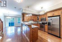 Ideally located in the heart of the city, this exceptional two-storey condo offers the perfect blend of convenience, comfort, and style. Just minutes from Memorial University, the Health Sciences Centre, and the vibrant downtown core, this thoughtfully designed home is ideal for professionals, students, or anyone seeking a low-maintenance urban lifestyle. The bright and airy open-concept main level is filled with natural light and features a spacious living and dining area with direct access to a covered balcony—perfect for relaxing or entertaining. The well-appointed kitchen includes a large sit-up peninsula, ceiling-height cabinetry, and a walk-in pantry, offering both function and style. Upstairs, a hardwood staircase leads to the primary bedroom, complete with a generous walk-in closet and a separate office nook. A spacious second bedroom, a contemporary four-piece main bathroom, and a convenient laundry area complete the upper level. Additional highlights include one underground parking space with private storage, an additional outdoor parking spot, and ample visitor parking. The monthly condo fee of approximately $427 covers snow clearing, garbage collection, and exterior and common area maintenance, providing peace of mind and ease of living. Move-in ready and perfectly situated—this condo presents an outstanding opportunity in the heart of the city! (id:27)