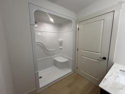 Welcome to this beautifully finished new construction home offering convenient one-level living. Thoughtfully designed, this home features two bedrooms and two full bathrooms, an attached garage, in floor heating and an efficient ductless heat pump for year-round comfort. The interior showcases durable waterproof laminate flooring, elegant solid surface and quartz countertops, and a bright eat-in kitchen that opens seamlessly to the living room—perfect for both everyday living and entertaining. Custom closets provide excellent storage throughout. For added peace of mind, the seller is offering an eight year Lux warranty. Ideally located near amenities, schools, and a nearby golf course, this home offers both convenience and lifestyle appeal. Step outside to enjoy the concrete back deck, ideal for low-maintenance outdoor living. Refrigerator, dishwasher, and range are included, making this move-in-ready home an excellent opportunity for downsizers or those seeking single-level living. Quick closing available.