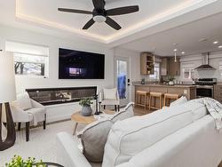Located in the heart of Crichton Park, experience elevated living in this beautifully reimagined 3-bedroom + den/office, 2.5-bath home. Meticulously redesigned with premium finishes and thoughtful detail throughout, every inch of this residence has been curated to create an entertainer’s dream, blending sophistication, efficiency, and comfort. Step inside to an impressive main floor featuring two spacious living areas, complete with a sleek electric fireplace and cove lighting adding warmth and cozy ambiance. The designer kitchen boasts stunning quartz countertops, soft-close cabinetry, pullout pantry doors, sink cup rinser, and under-cabinet feature lighting that creates a magical atmosphere—especially in the evenings. An elegant home office, stylish powder room and sleek foyer complete the main level. This home is equipped with solar paneling, a ducted heat pump, and an air exchanger, offering modern energy efficiency and year-round comfort. Upstairs, retreat to a generous primary suite, a walk-in closet, and a beautifully finished ensuite bathroom with double sinks and a get-ready nook. Two additional bedrooms and a full 4-piece bathroom with a floating vanity provide comfort and space for family or guests. While the basement remains unfinished, it offers incredible potential. A finished bonus room is ready to serve as a home gym, kids’ zone, second office, or cozy media den. Outside, enjoy living in a family-friendly neighbourhood just minutes from shopping, parks, and amenities. With its thoughtful touches, ambient lighting, luxurious finishes, energy-efficient upgrades, and versatile layout, this home delivers the perfect blend of style, comfort, and functionality.