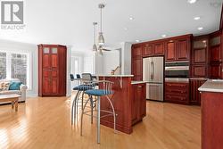 Imagine owning a private riverfront country retreat just minutes from town. Set on a south-facing 3-acre lot with direct Shubenacadie River frontage, this sun-filled 4-level side-split offers peaceful surroundings, exceptional privacy, and easy access to Enfield, Elmsdale, Lantz, and Halifax Stanfield Airport. Freshly painted and thoughtfully designed, the open-concept main floor is bathed in natural morning light and anchored by solid maple hardwood floors. The chef-inspired kitchen features quartz countertops, custom cabinetry, stainless steel appliances, and ample storage ideal for everyday living and entertaining. Oversized windows and double French doors connect seamlessly to an expansive deck and screened gazebo where you can relax or host gatherings. Upstairs, three generously sized bedrooms provide private retreats, including a tranquil primary suite with his-and-hers walk-in closets and a spa-style bathroom. The lower levels add flexibility with a bright rec room, renovated laundry, and a large bonus room with its own bath and exterior entrance perfect for a home office, studio, guest suite, or small business. Wellness and comfort are enhanced by a custom red cedar infrared sauna and fully equipped fitness room. Practical features include a water filtration system, GenerLink generator hookup, central vacuum, and new septic field. Outdoors, mature trees, perennial gardens, and wide-open green space create a private park-like setting with room for a pool, pickleball court, skating rink, or simply exploring. Zoned VIL, the property allows select institutional and commercial uses under HRM guidelines, offering rare flexibility. With ample parking, a storage shed, and numerous inclusions, this move-in-ready riverfront home offers a rare opportunity to embrace country living where space, nature, and convenience come together in perfect balance. (id:27)