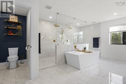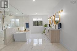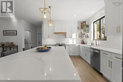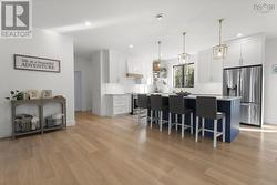Welcome to 106 Edward Drive a modern masterpiece where craftsmanship, comfort, and sustainability meet. Tucked away on a quiet private lane just steps from Grand Lake, this custom-built home offers the serenity of lakeside living with refined contemporary style. Every detail, from the hand-hewn 200-year-old fireplace mantel to the homes impressive EnerGuide rating of 62 GJ/a (66.6% better than code), showcases quality and innovation. Inside, radiant in-floor heat flows beneath open, light-filled living spaces framed by south-facing Low-E Argon windows. The chefs kitchen is both beautiful and functional, featuring quartz countertops, a custom range hood, LG appliances, a plumbed RO water fridge, and a walk-in pantry with an Acacia Chevron butcher block. The dining and living areas connect seamlessly, ideal for gatherings or quiet nights in. Upstairs, each bedroom offers a custom walk-in closet and plenty of natural light. The luxurious primary suite features a 14-foot shower with dual rain heads, a deep soaking tub, and a separate water closet.Outdoors, the nearly 18,000 sq. ft. treed lot includes a stamped concrete patio (14x25), electrical rough-in for a hot tub or pool, and a 960 sq. ft. attached garageperfect for vehicles, storage, or a workshop. Built for efficiency and comfort, the home includes a ductless heat pump on the main level, ducted system upstairs, and solar-ready roofing (up to 23 kW potential). With private deeded lake access just 450 metres away, 106 Edward Drive is more than a homeits a forward-thinking retreat designed for modern living. (id:27)