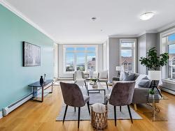 Soak in postcard-worthy, panoramic views of the Bedford Basin from this rare and luxurious 3-bedroom, 2-bath condo, one of the only 2 units in the building featuring two private balconies and access to an expansive additional outdoor space. The balconies nearly wrap around the entire unit, offering unmatched water views from every angle. From spectacular sunrises to summer regattas and dazzling city skylines, every window frames a stunning scene. Inside, the bright and airy open-concept layout is perfect for modern living, featuring a stylish kitchen with stainless steel appliances, generous cabinetry, and ample counter space. The spacious living area is filled with natural light and enhanced by high ceilings and remote-controlled window coverings for added comfort and convenience. The primary suite includes a walk-in closet and private ensuite, while the second and third bedrooms are both generously sized with large closets. Well maintained and move-in ready, this home also includes in-unit laundry with extra storage and refined finishes throughout. Condo fees include heat, hot water, underground parking, and a storage unit. Residents enjoy premium amenities such as a social room, gym, library, and car wash bay. Ideally located just minutes from the shops, restaurants, and conveniences of Larry Uteck, this exceptional condo delivers the ultimate in comfort, space, and lifestyle.