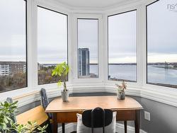 Enjoy stunning harbour views from every window in this bright 3-bedroom, 2-bath condo! The open-concept living and dining area features an electric fireplace and walkout to a private balcony, while the well-planned kitchen flows seamlessly into the main space – perfect for entertaining or unwinding at home. The primary suite offers a walk-in closet and ensuite, and the third bedroom, with its electric fireplace and custom built-ins, makes an ideal home office or den. Thoughtful details include an in-unit laundry room and a vent opening designed for easy connection of a portable AC unit. With a prime location just minutes from downtown Halifax, Bayers Lake, and all amenities, this condo combines comfort, style, and convenience with unbeatable views of the harbour, ships, and city lights.