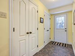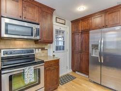 The beautiful property backs on a greenspace, so no one can build behind you. This home has been rebuilt from the foundation up, except for the outside frame. New electrical, plumbing & many stunning improvements. It offers approximately 2390 finished sf. You’ll enjoy the spacious entries found at the front, back and lower level of this home. The concrete drive, vinyl exterior & faux stone accents, allow for low maintenance. The spacious living room boasts an LG heat pump. Gleaming hardwood floors lead you to the dining room where you’ll find tasteful built-in cabinets with leaded glass doors to showcase your treasures. The stunning kitchen, with quartz countertops, is equipped with a peninsula, maximizing your space for meal prep. Extra features include a broom closet, spice storage, recycle centre, pot drawers & more. The dishwasher, fridge, stove & OTR microwave all remain. A sweep tray for the central vac is also located here. A garden door leads you to a screened-in deck. Plastic enclosures cover the screened areas, during the cooler months. Hardwood floors continue down the hall to the bedrooms. You’ll be delighted to find a walk-in closet & an ensuite bath in the Primary suite. The second bedroom, could double as a home office. A half bath, linen closet, and storage closet are also found nearby. Your family will love spending time together in the light & bright lower level. The family room is equipped with a gravity fed oil stove. A second heat pump is located here. The multi-purpose room offers so many possibilities-a gym, guest space, office or den. A storage pantry & wine room are conveniently located here. The third bedroom is bright and cozy. The folding counter in the laundry room is an added convenience. Your family & quests will enjoy the privacy of the 4 pc bath. The handy person in your household can whittle away the hours in the workshop. You can also access the backyard & a second small deck from here.