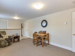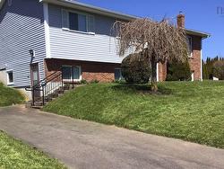 This lovely home is well maintained and move-in ready, with lots of possibilities! Main-level living attainable with back entrance at grade. This floor offers convenient laundry closet, an open kitchen (complete with appliances), dining area and bright living room, with an economical heat pump. Down the hall, two bedrooms and the primary, with direct access to the main bath. Downstairs has a generous rec room (gravity-fed oil stove disconnected/oil tank removed but could easily be reconnected or switched to wood or gas), a bathroom, plenty of storage space and another bedroom/den/office with walkout at grade and separate paved drive - ideal for an in-law/guest suite! Recently painted throughout, new flooring, most windows replaced, chimney repointed (2025), heat pump (2 yrs), siding (8 yrs), custom blinds, Hot Water Heater (2 yrs-wrapped) and more. Lovely, mature landscaping, easily maintained with inground irrigation. Great location, just minutes from Valley Regional Hospital, NSCC, schools, parks, and local amenities, this property should be on your list!