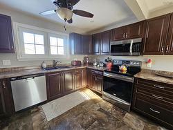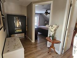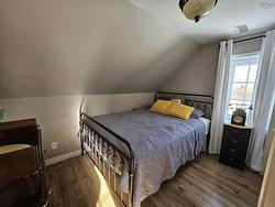 Welcome to this charming 1.5-storey home offering comfort, functionality, and space both inside and out. The main level features a bright kitchen and cozy living room, creating a welcoming area for everyday living and entertaining. Upstairs, you’ll find two generously sized bedrooms, including a primary bedroom with a walk-in closet, along with a full bathroom. A small nook at the top of the stairs provides the perfect spot for a home office or reading area. The finished basement adds even more living space with a rec room and convenient half bathroom, ideal for family time, hobbies, or guests. Outside, the home sits on a large lot of over 27,000 sq. ft., complete with a paved driveway and plenty of room to enjoy the outdoors, garden, or expand your vision. This well-rounded property offers a great balance of indoor living space and outdoor potential.