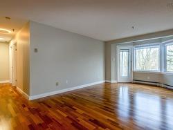 Welcome to Unit 204, a warm and beautifully updated condo in a well-maintained building offering exceptional comfort and convenience. This secure property features underground parking with a heated concrete ramp, a remote-controlled garage door, an elevator servicing all levels, individual storage lockers, and each unit has its own power meter. Condo fees cover building maintenance, repairs, cleaning, lawn care, snow removal, garbage removal, water, and building insurance, keeping life simple and stress-free. A concrete wheelchair ramp at the rear entrance enhances accessibility. Inside the unit, the foyer and kitchen feature ceramic tile, while the living room and bedrooms showcase engineered Kempas hardwood for a rich, timeless feel. The kitchen is equipped with oak cabinets, a new countertop, sink, and tap, along with updated plugs, switches, and light fixtures. Appliances are included for easy move-in. The bright living room offers a bay window and garden door leading to the private balcony. A dedicated dining area connects seamlessly to the kitchen and living space. The primary bedroom also features a charming bay window, adding extra natural light and character. The bathroom has been refreshed with a new vanity, sink, and lighted mirror. This unit also includes in-suite laundry. Building upgrades completed in 2025 include Tyvek wrap, quality vinyl siding, new soffit and fascia, roof shingles on front and rear sections, and fresh exterior paint. The front entry portico was also replaced in 2025, ensuring continued pride of ownership throughout the property. Unit 204 delivers comfort, quality updates, and convenient low-maintenance living in a thoughtfully cared-for building.