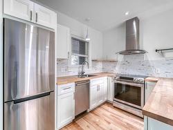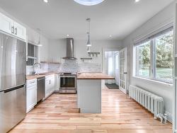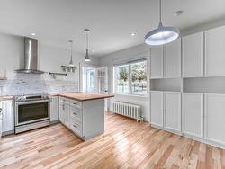 Welcome to this charming home with gorgeous upgrades including new kitchen with appliances, two large full bathrooms and a 24' x 26' heated and wired garage. The sprawling property has the rear portion fenced with black chain link that includes the garage. The back yard has had professionally installed retaining work done as well. Beyond the back gate is also a small shed that is included. Beautiful original hardwood flooring on the main level, newly painted throughout. Large windows keep this home full of natural light and each window has nice quality coverings for when you want a little less light coming in. Super dry basement with high ceilings and a cold storage room.