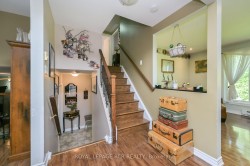 Welcome to Rosemont. This property boasts a private, treed and landscaped lot with 3 + 1 bedroom side split featuring a built-in garage with direct entry to the home. The open concept main floor showcases a spacious kitchen, dining and living area ideal for large gatherings. A separate family room offers a cozy ambiance with a fireplace and walkout to covered patio. The upper level features 3 large bedrooms and a 4pc bathroom. The lower level has a 4th bedroom and a recreation room perfect for a games area. The very private backyard provides ample space for outdoor activities. A double paved driveway completes this property, located just minutes west of Alliston.