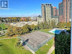 Rarely offered, bright, and spacious 2-bedroom (plus den) unit, freshly repainted and featuring quality laminate flooring throughout. Almost 1100 sq.ft of living space. Enjoy spectacular South Western views of Ajax, with sun-filled exposure creating gorgeous evening city lights. The large primary suite features a 3-piece ensuite bath and a walk-in closet, while the second bedroom is well-sized. This well-maintained unit includes a full 4-piece main bath and convenient en-suite laundry. The location is unbeatable: steps to Ajax Plaza, the Lakeridge Hospital, and minutes to Highway 401. Enjoy fantastic building amenities, including a pool, recreation room, exercise room, sauna, tennis court, and visitor parking. Available for immediate possession. (id:27)