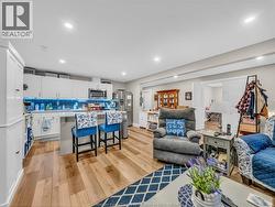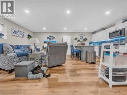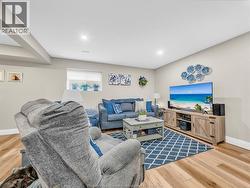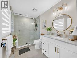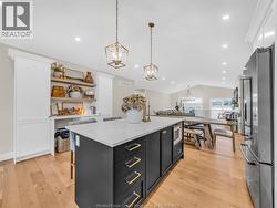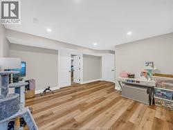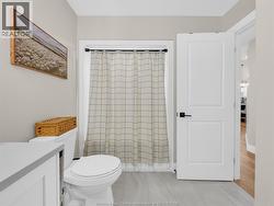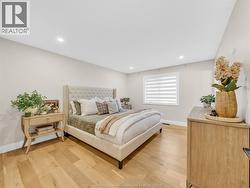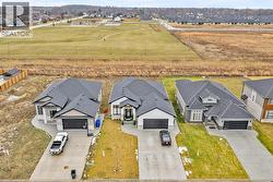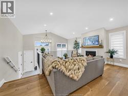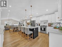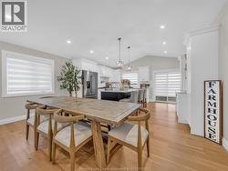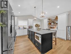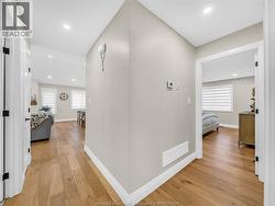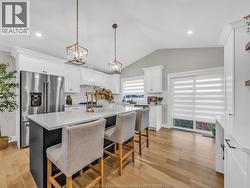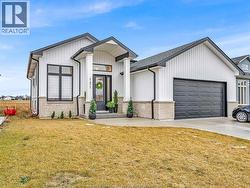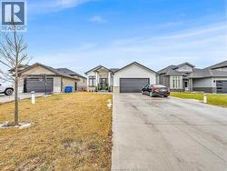 Located in the sought after Kingsbridge neighbourhood of Amherstburg, this custom-built raised ranch by Royal Oak Luxury Builders showcases modern design, quality craftsmanship, and high-end finishes throughout. Built in 2022 set on a 51.95 ft x 154.75 ft lot, this 4 bedroom, 3 full bathroom home offers a well-designed layout with spacious bedrooms and vaulted ceilings that add openness to the living space. Engineered hardwood flooring runs throughout the home, complemented by white custom cabinetry and white quartz countertops for a clean and timeless look. The primary bedroom includes a private ensuite, while the fully finished lower level features an in-law suite, providing excellent flexibility for extended family or guests. Situated on a deep lot with no rear neighbours, overlooking greenspace, just steps from Pat Thrasher Park, a convenient bonus for outdoor enjoyment. (id:27)