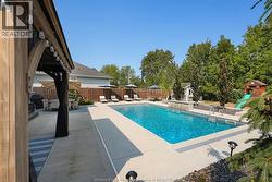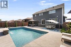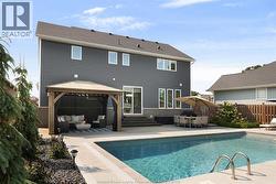 Welcome to this exceptional two-storey home in sought after area of Meadowview Estates. Built by BK Cornerstone, this home is thoughtfully designed for both elegance and everyday living. Main floor features a living room with gas fireplace, mudroom, 2 piece bath and a stunning custom kitchen with quartz countertops, ample cabinetry and a walk-in pantry. The primary suite offers a spa-like ensuite with soaker tub and tiled shower. With 5 spacious bedrooms (3 with walk-in closets), 3.5 bathrooms and a fully finished basement, there's room for the whole family. Step outside to your private backyard oasis with an inground heated saltwater pool with LED lighting, waterfall feature, Euroshed bar and playground - perfect for entertaining. Professionally landscaped with no rear neighbours for added privacy. A true must-see! (id:27)