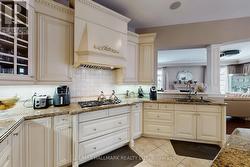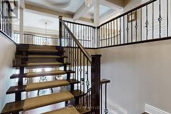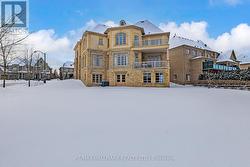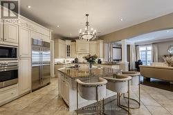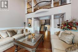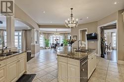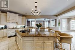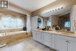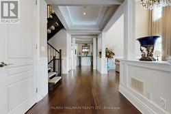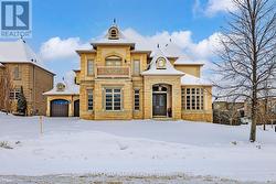 Exquisite detached residence offering approx 6,000 sq. ft. of refined living space, meticulously maintained by the original owners & set on a premium corner lot in the prestigious Belfountain community. This elegant 4-bdrm home offers ensuites for every bedroom, a walk-out basement, & exceptional curb appeal. The impressive main level showcases 10' ceilings, a grand double-door entrance, rich hardwood flooring, pot lights, blt-in speakes, & detailed wainscoting in the formal living and dining rooms. The thoughtfully designed layout is ideal for both everyday living & entertaining. The gourmet kitchen is appointed with granite countertops, blt-in appliances, oversized centre island, premium custom cabinetry & opens seamlessly to the family rm. A private library with vaulted ceiling & French doors offers a quiet workspace or retreat. Iron picket railings & an oak staircase lead to the upper & lower levels, highlighting the home's craftsmanship throughout. The primary suite is not to be missed w/fireplace, sep sitting area & spa-like ensuite. Additional features incl a rare 4-car tandem garage with interior access, extended driveway parking for up to 8 vehicles, plywood subfloors, 2 cold rooms, rough-in for a 3-piece bath in bsmnt, and a separate bsmt entrance offering excellent future potential. Ideally located minutes from shopping, golf courses, Highway 404, and top-tier schools including St. Andrew's College. An exceptional property combining luxury, space, & lifestyle in a sought-after setting. (id:27)