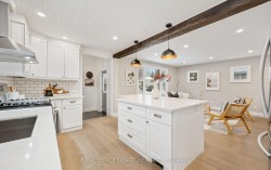 Nestled in one of Barrie's most desirable North East pockets, this beautifully renovated bungalow offers a rare blend of modern comfort, timeless charm, and a location families fall in love with. Known for top-rated schools, mature trees, quiet streets, and friendly neighbours, this neighbourhood provides the perfect balance of community and convenience - with quick access to the hospital, Georgian College, downtown, waterfront restaurants, and nightlife. Set on a spacious, mature lot, the exterior features a detached garage, professional landscaping, and a large cedar deck built over a reinforced concrete pad ready for a future hot tub. The private, fenced backyard is a true retreat, highlighted by stunning pyramidal flowering pear trees that create a beautiful seasonal backdrop. Inside, wide-plank engineered hardwood floors carry through the open-concept main level. A chef's kitchen with an oversized island flows seamlessly into the living space, made possible by a striking 10x10 Fir beam. The bathrooms were professionally renovated down to the studs with new insulation, mold-resistant drywall, and Schlüter waterproofing. The primary bedroom serves as a quiet sanctuary with a custom walk-in closet and spa-inspired ensuite. A front foyer and custom mudroom add functionality, while the professionally finished basement extends the home with two additional bedrooms, a generous rec room, and a luxurious bathroom. Mechanical upgrades include a brand-new water heater, updated ductwork, 100-amp service with electrical improvements, and a dedicated 240V line for a future hot tub. Exterior improvements include newer shingles, all windows replaced within 10 years, updated soffits, fascia, troughs, and a gas line for a stove. Modern trims, baseboards, doors, and LED lighting with dimmers complete the warm and welcoming interior. This home offers a rare combination of thoughtful upgrades, a desirable neighbourhood, and an exceptional lot-ready for its next owners to enjoy.