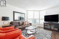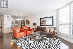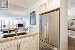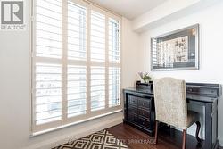 Top 5 Reasons You Will Love This Home: 1) One of the most coveted suites in the building, this residence is positioned on the preferred side of the East Tower and enjoys a permanently protected view, offering rare peace of mind with no future development planned directly in front of the unit 2) Extensively customized beyond builder finishes, the suite showcases engineered hardwood flooring throughout, tall baseboards, and bespoke interior doors, creating a polished, elevated atmosphere from the moment you step inside 3) The kitchen is designed to impress both home chefs and entertainers, featuring quartz countertops, premium custom cabinetry, a brand-new full-size refrigerator, and a professional-grade Fisher & Paykel stove valued at over $10,000, a standout upgrade rarely found in condo living 4) Everyday comfort is elevated with thoughtful upgrades, including a spa-inspired bathroom with a modern TOTO toilet, California shutters on every window, and a built-in sound system throughout, while the spacious bedroom and versatile den offer flexibility for a home office, guest space, or additional living area 5) Outdoor living is equally well considered, with a private balcony complete with a barbeque and patio furniture, ideal for relaxing or entertaining while taking in the view, along with one owned parking space and the option to rent a second, condo fees that include heat, hydro, and water, and access to premium amenities such as an indoor pool, hot tub, sauna, gym, and party room, all just steps from Barrie's waterfront, trails, shops, and restaurants. 843 sq.ft. (id:27)