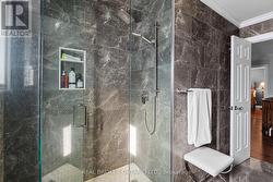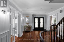 Welcome to 43 Crimson Ridge Road, a beautifully appointed family home located in Barries sought-after Bayshore community. Set on a premium 169-ft-deep pie-shaped ravine lot backing onto greenbelt, this two-storey residence offers four bedrooms, four bathrooms, and a fully finished basement with a full bathroom. Professional landscaping, stamped concrete walkways, inground irrigation, and exterior soffit lighting frame the home, while new wrought-iron and glass double doors create a striking first impression. Inside, a hardwood circular staircase anchors the main floor. Pot lighting, wainscoting, crown moulding, hardwood flooring, and two gas fireplaces highlight the living spaces. The kitchen and principal rooms flow naturally to the private rear patio, complete with a hot tub and newly finished cabanaperfect for entertaining guests and family. Upstairs, the primary suite includes a large sitting area, custom walk-in closet, and oversized ensuite with heated floors, a glass-enclosed shower, and a soaker tub. A newly renovated 4-piece bathroom serves the additional bedrooms. The attached double garage with inside entry offers a loft storage area with an electronic hoist and a convenient drive-through to the backyard. Approved architectural drawings for a separate side entrance to the basement add future potential. Additional features include a built-in security system and on-demand hot water. Steps to Wilkins Trail and beach, Valleyview Park, fantastic schools, and minutes to Highway 400, the GO Train, downtown Barrie, and south-end shopping, this property balances a peaceful natural setting with urban convenience. (id:27)