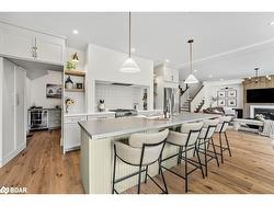 Experience Unrivaled Luxury in Tollendal's Premier EnclaveStep into the lap of luxury with this stunning, custom-built home in the coveted Tollendal area. Every detail exudes sophistication and refinement, making this property the ultimate lifestyle upgrade. With approximately 4000 square feet of opulent living space, this magnificent residence boasts five lavish bedrooms and five pristine bathrooms.Natural light pours in through expansive windows, accentuating the rich hardwood floors and exquisite fixtures throughout. Enjoy cutting-edge living with features like elevators spanning from the basement to the second floor and soothing in-floor heating in tiled areas.The gourmet kitchen is a culinary haven, equipped with quartz countertops, a spacious island, hidden pantry, high-end appliances, and ambient under-cabinet lighting. Soft-close drawers, a coffee bar, and wine fridge make it perfect for discerning chefs.The open-concept living area features a striking wood-trimmed accent wall with a gas fireplace and elegant white oak stairs. The main floor office is ideal for professionals or entrepreneurs, offering seamless access from the front entrance.The master bedroom is a serene retreat, complete with an oversized master shower featuring dual shower heads and a freestanding tub. Each additional bedroom boasts a walk-in closet and en-suite bathroom for ultimate convenience.The finished basement provides ample space for a fifth bedroom, exercise room, or expansive recreation area. The exterior's blend of Malbec siding, brick masonry, and wood accents creates a breathtaking facade, complemented by exterior pot-lights and tastefully designed window finishes.Positioned in a top-rated school zone, this property offers the perfect blend of luxury and convenience. Enjoy scenic walking trails, Lake Simcoe access via the nearby marina, and the picturesque Tyndale Beach, right across the street. Your dream home awaits!