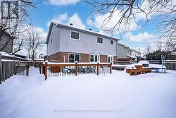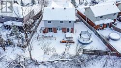 UPDATED 4 BEDROOM FAMILY HOME ON A PIE SHAPED LOT IN THE HEART OF HOLLY! Morning walks to the park, quick school drop-offs, and everything you need just minutes away make this one of those places that instantly feels easy to live in, with Mapleton Park and walking trails steps from your door and fast access to schools, the rec centre, Park Place shopping, Costco, dining, and major highways. The brick and siding exterior pairs with a covered front entryway, a double car garage, and a double wide driveway with parking for 4, while the pie shaped lot opens up to a backyard built for real living with a back deck, hot tub, built in BBQ, patio dining set, fire table, trampoline, and a gas BBQ line ready for effortless entertaining. 1,975 square feet above grade delivers a bright, carpet-free layout with generous principal rooms, updated bathrooms, and newer pot lights, adding a fresh, polished feel. The kitchen keeps things light and social with white cabinetry, stainless countertops, a tile backsplash, newer stainless steel appliances, and a centre island that naturally draws everyone together. A garden door walkout from the living and dining area, plus a sliding glass walkout from the family room, both lead straight to the backyard, creating an easy indoor-outdoor flow, while the main-floor laundry with side-yard access and direct garage entry keeps everyday life running smoothly. Four well-sized bedrooms support busy family living, highlighted by a primary retreat with a fireplace, walk-in closet, and a refreshed 4-piece ensuite with dual sinks and a glass-walled shower. The unfinished basement offers wide open potential for future living space, giving this home the flexibility to grow with your life. With space to stretch out, room to grow, and a layout built for real life, this is a #HomeToStay you can instantly imagine yourself in. (id:27)