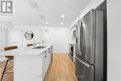 Welcome to this modern, move-in-ready 2-bedroom condo located in Barrie's desirable and growing south end. Built just two years ago, this home offers the perfect blend of convenience, privacy, and low-maintenance living in a neighbourhood with exciting future development underway. Enjoy a private, separate entrance, an open-concept kitchen, dining, and living space, and a balcony large enough for BBQing and entertaining. The spacious primary bedroom features a double closet, while the second bedroom also includes a full closet, ideal for guests, a home office, or growing families.Additional highlights include all new appliances, a full 4-piece bathroom, and a separate laundry room with sink and extra storage. Condo fees are exceptionally low and parking is effortless with a private garage and one-car driveway.This well-located home is within walking distance to a park, walking trails, and a nearby fire station, adding an extra layer of peace of mind. A fitness facility is located less than 2km away, and the GO Train station, schools, and essential amenities are just minutes from your door.Whether you're a first-time buyer, downsizer, or investor, this property offers modern comfort, lifestyle convenience, and long-term value in one of Barrie's fastest-growing communities. (id:27)
