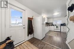 Step into homeownership with this charming, fully updated 1.5-storey home-an ideal opportunity for first-time buyers looking to break into the market without compromising on style or comfort. Located on one of Belleville's original streets, this move-in-ready two-bedroom, one-bathroom home offers exceptional value and peace of mind.Inside, you'll love the bright, open-concept L-shaped living, dining, and kitchen space, thoughtfully designed for everyday living and entertaining. Modern shaker-style cabinetry with sleek black hardware, a stylish glass tile backsplash, and durable laminate flooring create a fresh, contemporary feel throughout. Patio doors lead to a sunny, south-facing 12' x 10' deck-perfect for morning coffee, weekend BBQs, or hosting friends.The fully fenced backyard offers privacy and security, ideal for pets, kids, or simply relaxing outdoors. A spacious 4-piece bathroom adds comfort and functionality, while the generous front foyer includes a supplementary wall heater for added warmth. Rare driveways on both sides of the home provide flexible and convenient parking-an added bonus for new homeowners. This home is conveniently located with quick access to Highway 401 via Cannifton Road and close to all amenities. Affordable, updated, and turnkey, this is a fantastic chance to own your first home and start building equity in the heart of Belleville. (id:27)