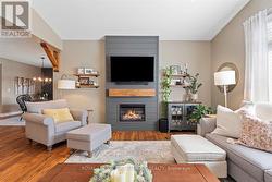 Welcome to 4 Trinity Court Located in a desirable, family-friendly neighborhood, this beautifully maintained 8 -year-old home offers the perfect blend of comfort, style, and thoughtful design. Situated on a quiet cul-de-sac, this 2-storey home features 3 +1 bedrooms, 4 bathrooms and a double attached garage with direct access to a convenient mudroom and a privately located powder room for guests. Step into the welcoming foyer that leads to an open concept floor plan with engineered hardwood flooring and other high-end finishes showcased throughout the home. The living room features a vaulted ceiling with pot lights, a cozy fireplace with modern shiplap as well as a beautiful wood mantle and decorative wood brackets that add character and charm. The luxury kitchen is designed to impress, featuring an oversized island with granite countertops as well as a coffee bar tucked into a walk-in pantry. The adjoining dining room is perfect for entertaining, with patio doors leading to the backyard. Off the foyer you-ll find a beautiful wood staircase that leads to the second floor, where you-ll find three spacious bedrooms and a convenient laundry room. The primary suite is a standout, offering a generous walk-in closet and a beautiful 5 -piece ensuite bath for your own private retreat. The finished basement offers additional living space with a comfortable bedroom, a 4-piece bathroom, a cozy rec room with a fireplace, and plenty of storage. Just off the dining room, step into a backyard built for outdoor enjoyment-complete with a covered composite deck, an above-ground pool, a fully fenced yard, and a convenient irrigation system to keep the landscaping both in the front and back green and thriving. This tasteful home stands out with quality features and is ideally located just minutes from shopping and highway access. Better than new and move-in ready, this home delivers exceptional quality and value in todays market. (id:7525)