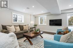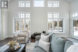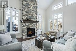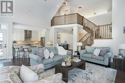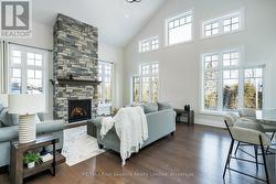 Move in now and still enjoy the best of ski season in this stunning, custom-built home on one of the area's most coveted streets - just a 3-minute drive to Thornbury and moments from ski hills and Georgian Bay. Built by Reid's Homes in 2019, this 5-bedroom, 4-bathroom residence sits on an impressive 98 x 240 ft lot, offering privacy, space, and a true four-season lifestyle. The bright, thoughtfully designed main floor features 9' ceilings vaulted to over 20', oversized windows, and a striking custom stone fireplace with wood mantel. The chef's kitchen includes granite countertops, under-cabinet lighting, peninsula seating, and flows seamlessly into a separate formal dining room - ideal for entertaining. A main-floor primary suite offers a luxurious 5-piece ensuite, while a second bedroom doubles perfectly as a home office. Additional conveniences include a powder room and a spacious laundry/mudroom with direct access to the two-car garage. Upstairs, you'll find two generous bedrooms, a 4-piece bath, and an open loft living space overlooking the main level. The fully above-ground lower level is equally impressive, with a bright bedroom, ensuite, walkout access, and abundant natural light, enabling the property to ultimately offer almost 4000 sf of bright, above-ground living. Enjoy indoor and outdoor living with a full speaker system throughout the home, garage, and deck, plus a massive composite deck with glass railings, LED lighting, and outdoor speakers-perfect for summer evenings. With just one street between you and Georgian Bay and a backyard backing onto mature trees, this exceptional property delivers comfort, style, and location in equal measure. (id:27)