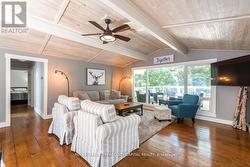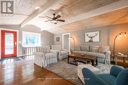 Perfect year-round family retreat in this stunning 4-bedroom, 3-bathroom home designed for comfort and relaxation. The open-concept main floor features a bright living and dining area with stunning views surrounding forest, office, spacious kitchen, and a serene primary suite with ensuite washroom. The finished lower level offers granite stone floors, a large family room, and three additional bedrooms-ideal for entertaining in any season. Enjoy the Muskoka room, expansive deck, and the beauty of nature all around. With a Double-car garage and bonus living space above, there's plenty of room for guests. Enjoy hot tub on lower deck, fire pit and wood burning sauna! 3 season large Sunroom, Bunkie Over the Garage! Don't miss this exceptional all-season getaway! (id:7525)